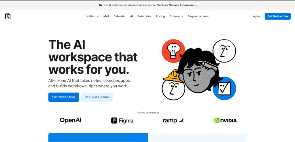 Notion AI adalah fitur tambahan dalam platform Notion yang membantu menulis dan mengelola ide dengan efisien.