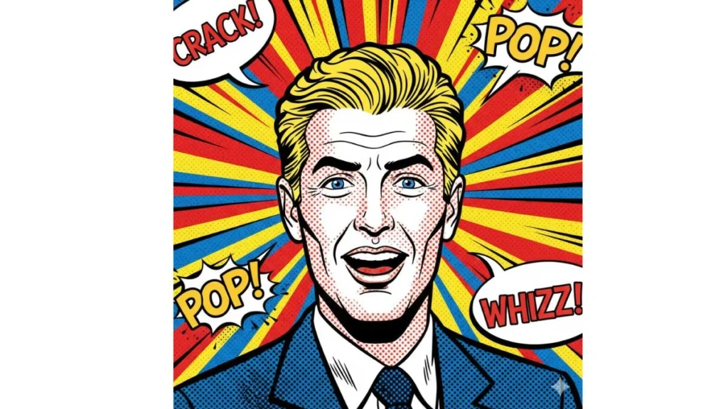 Classic comic-inspired Pop Art banner, vibrant neon color palette, exaggerated bold contours, consistent halftone dot overlays, crisp graphic edges, 100% facial realism, all vector design, no photorealism.