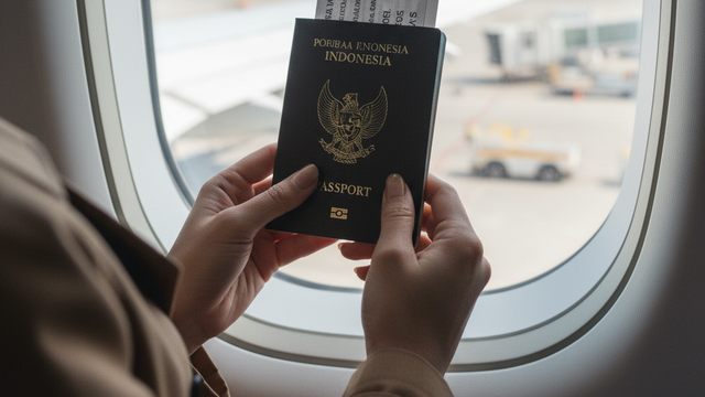 Terkadang estetika bandara tidak perlu melibatkan potret wajah. Foto detail tangan yang memegang paspor dan boarding pass dapat menghadirkan sensasi antisipasi perjalanan. Prompt ini menekankan kedekatan objek dengan jendela pesawat, dengan sayap atau landasan pacu sebagai latar.