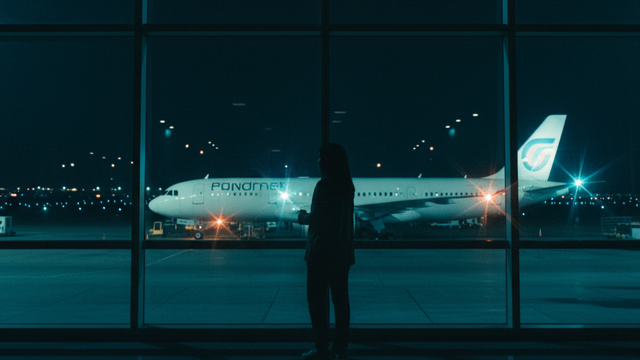 Bandara pada malam hari memiliki kesan magis tersendiri. Cahaya landasan pacu, lampu pesawat, dan interior terminal yang gelap menciptakan atmosfer sinematik yang kuat. Prompt ini menekankan siluet subjek yang berdiri di dekat jendela, menatap ke arah pesawat yang bersiap berangkat.