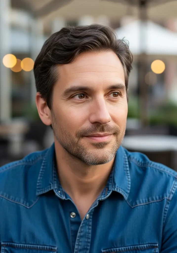 Turn this person into a comic strip character. Keep the same facial features, hairstyle, and expression. Style: bold outlines, cel-shaded colors, simple backgrounds, expressive poses, clean comic panel aesthetics.