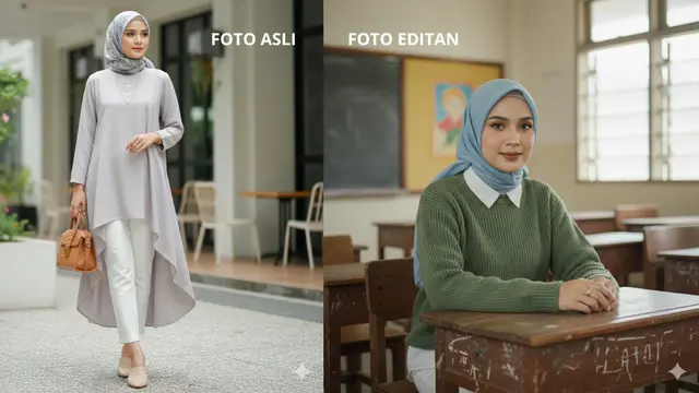 Tips: Gunakan latar seperti kelas, papan tulis, atau lorong sekolah tua dengan cahaya lembut dari jendela agar hasilnya terasa realistis.